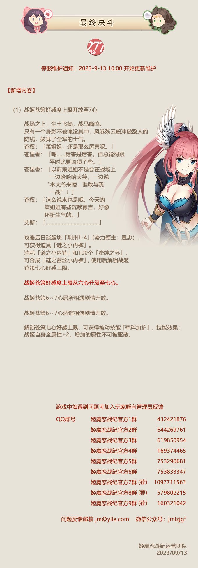 No.277 最终决斗《姬魔恋战纪》9月13日更新公告