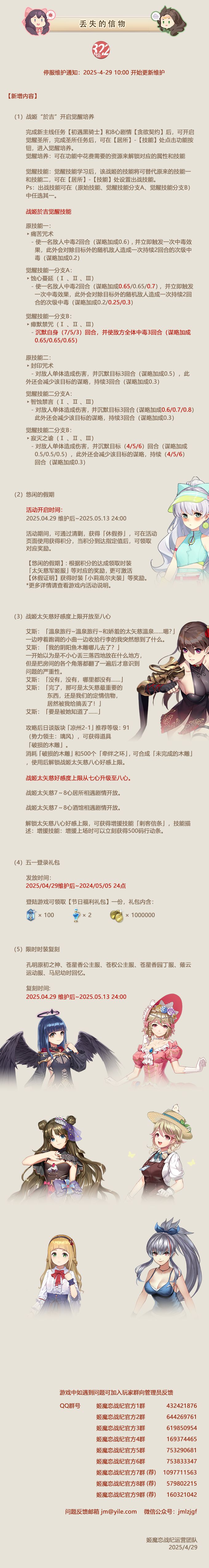 No.322 丢失的信物《姬魔恋战纪》04月29日更新公告