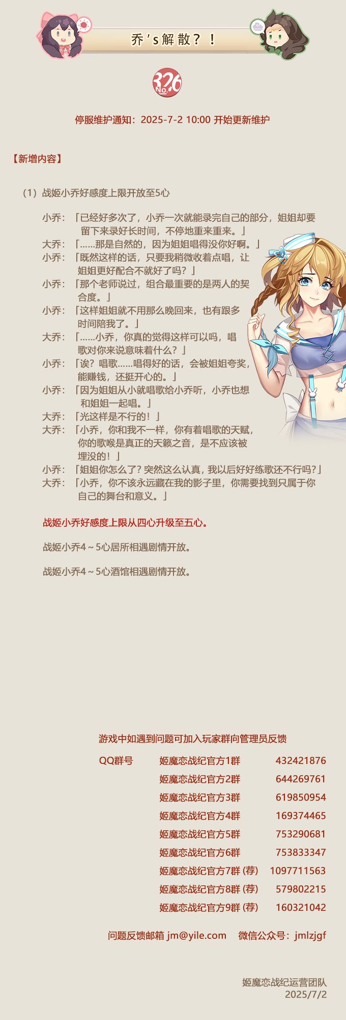 No.326 乔's解散?!《姬魔恋战纪》07月02日更新公告