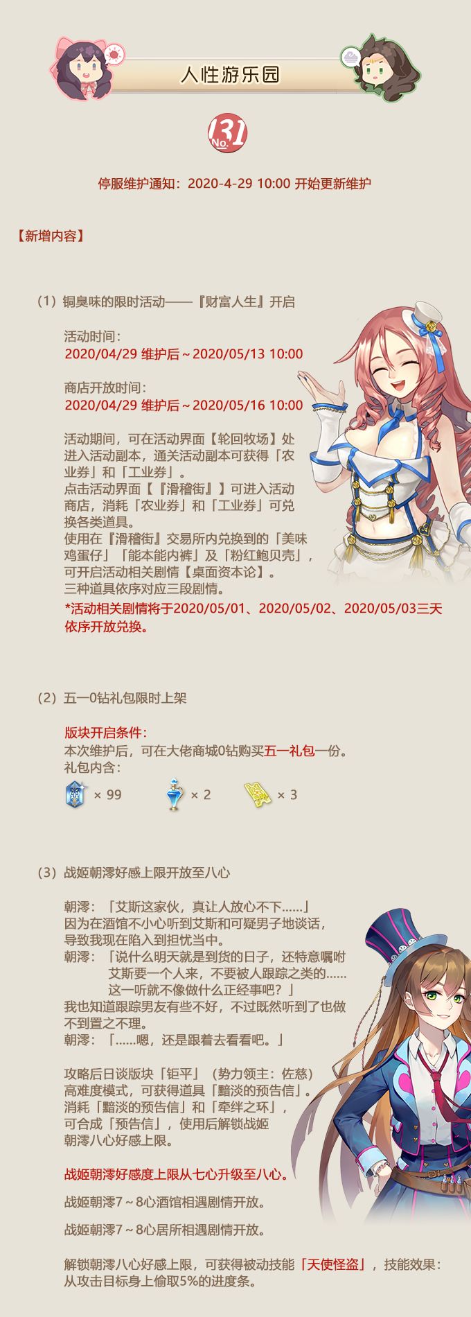 NO.131人性游乐园 《姬魔恋战纪》4月29日更新公告