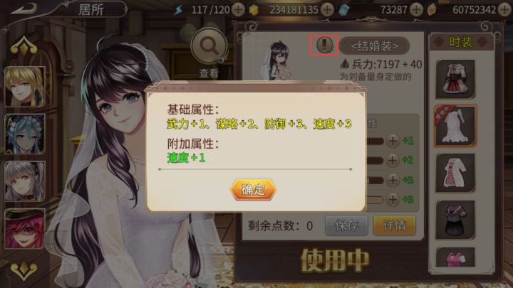 上图是新UI战姬详情页图。本次居所UI调整最大的功能是“换装”。之前有老玩家提出“当一个战姬拥有多套时装,时装属性和时装外观很难取舍”,本次我们针对这个问题给出了我们的解决方案。具体来说,点击换装按钮之后,会显示该战姬换装内页,点击类似“!”按钮时候,我们能看到当前时装的属性点情况,点击“详情”时候,我们能看到目前拥有所有时装可调配各项属性的上限(绿色数值条)目前姬魔时装属性分“基础属性”和“