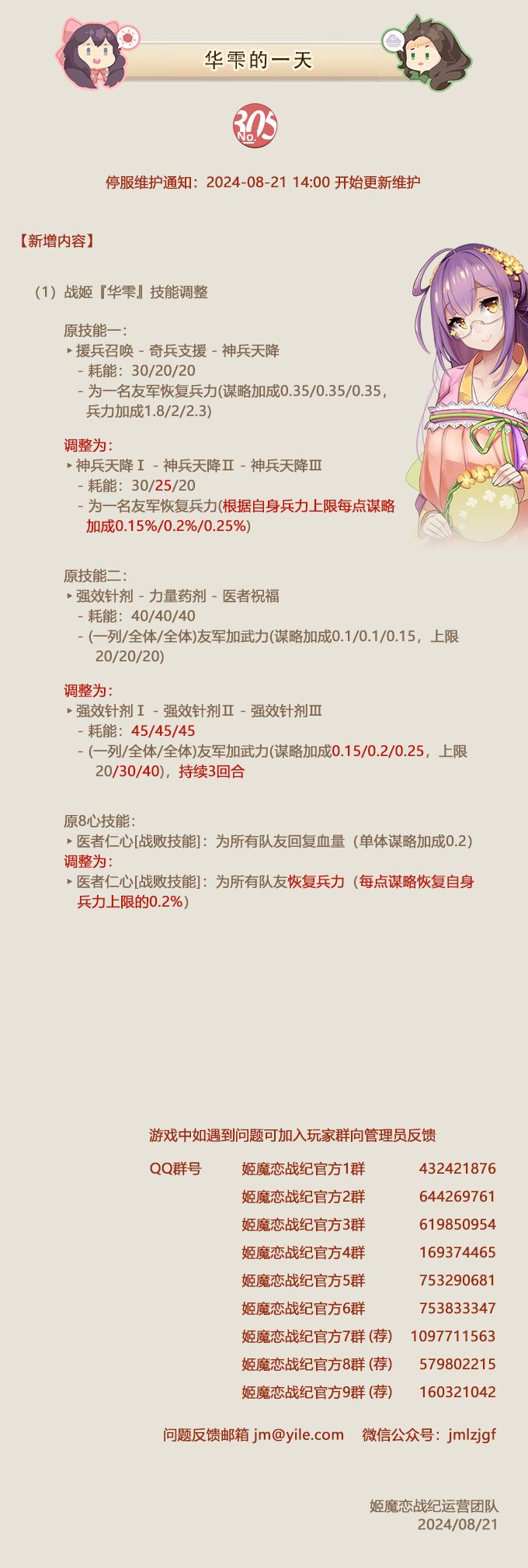 No.305 华雫的一天《姬魔恋战纪》08月21日更新公告