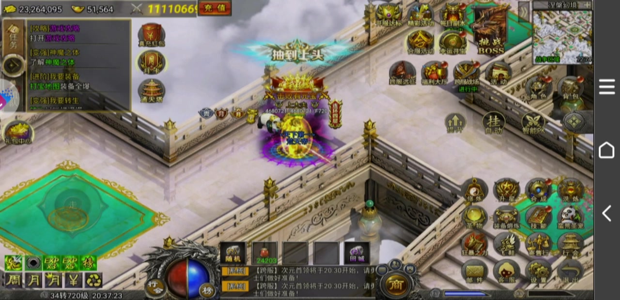 五大陆主城的每个尽头都有一个神将BOSS,视频里已经被人打了所以没有了,这个神将BOSS一条天一刷新一共有7个可以爆龙神剑甲,但是爆率特别低,有总比没有好,想碰运气的小伙伴可以去试试,前提把修炼法宝点上去,要不然打的特别慢[表情_酷]