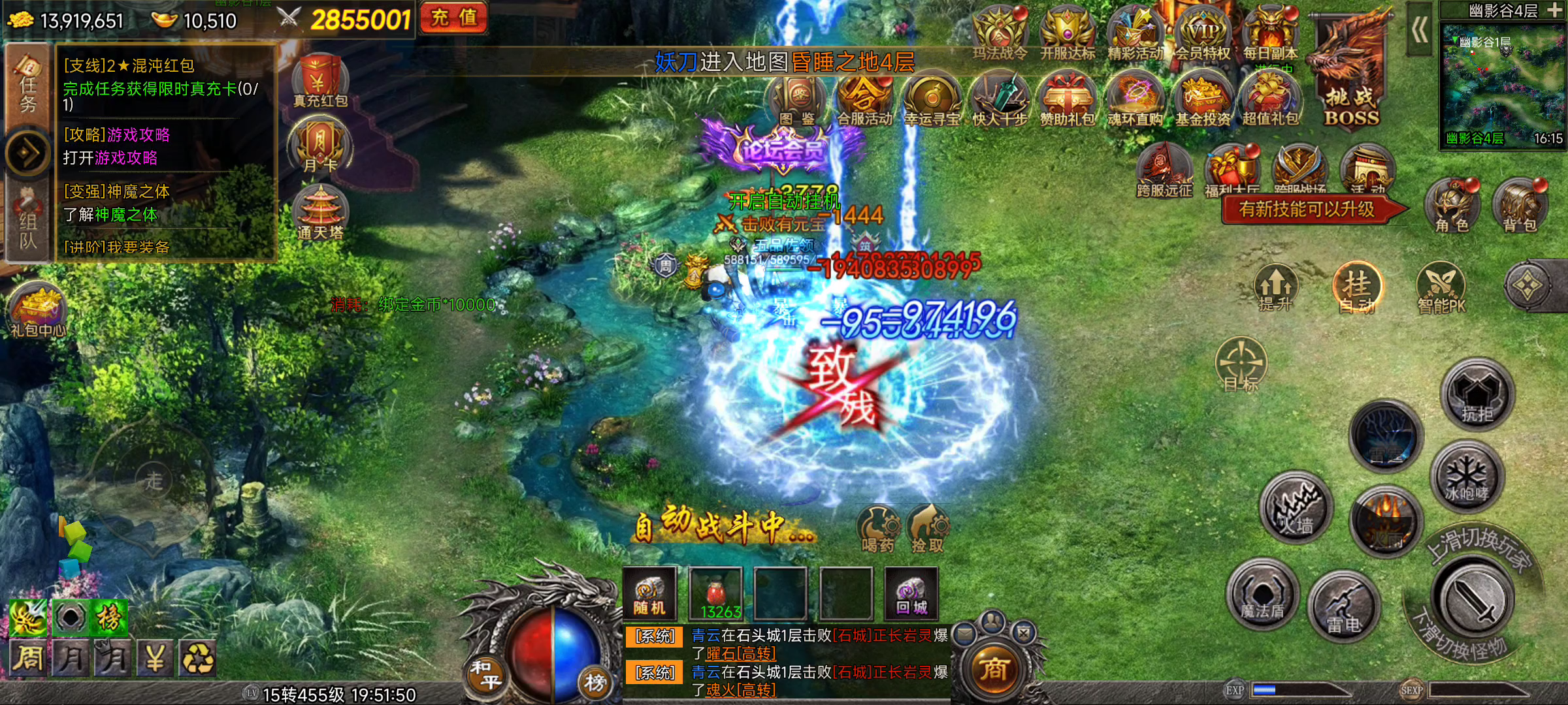 15到19转这个阶段,因为需要堆反伤属性,升级三件套,需要大量的绑金,战力够的可以转法师来昏睡之地4刷怪,怪物密集刷新快。刷金效率高(得有金币魂环) 另外每天的送财鹿也是一个绑金的重要来源。