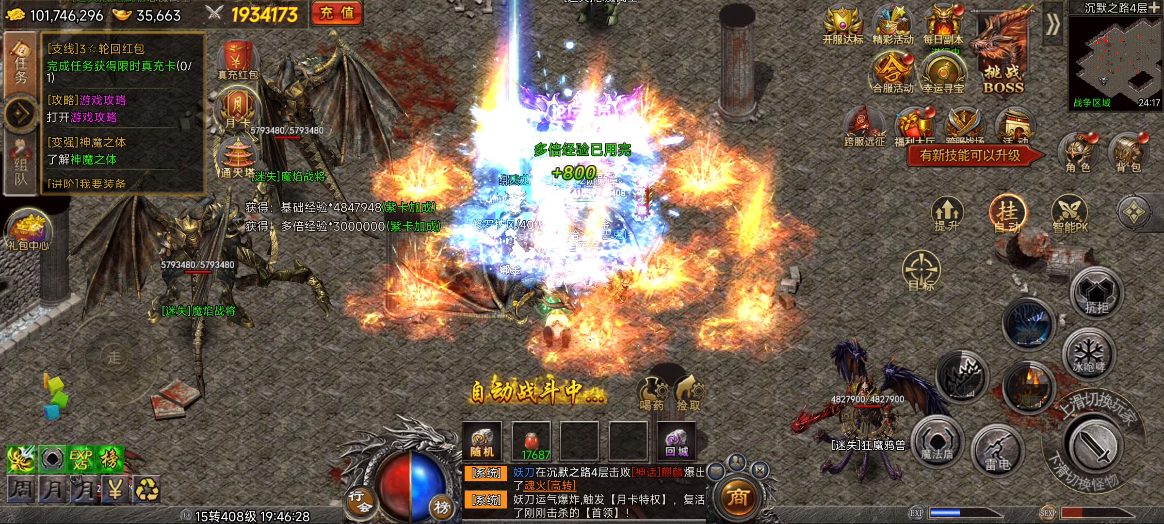 萌新最好是12转400级,一口气拉到15,神魔提升到42去凑三个传奇首饰套增加一下血量和伤害。 注意,生肖级不能点挂机,但是单点目标后会触发自动pk,和挂机一样的。 道士可以越战力打生肖,注意开全体,带着高级圣兽和生肖一起打给你自己回血,不然扛不住。 法师打起来会快一些,但是属性要求比道士要高,需要堆40以上的吸血40以上的反伤减免,加商店的4个绑金药水。体力,幸运,闪避,吸血。