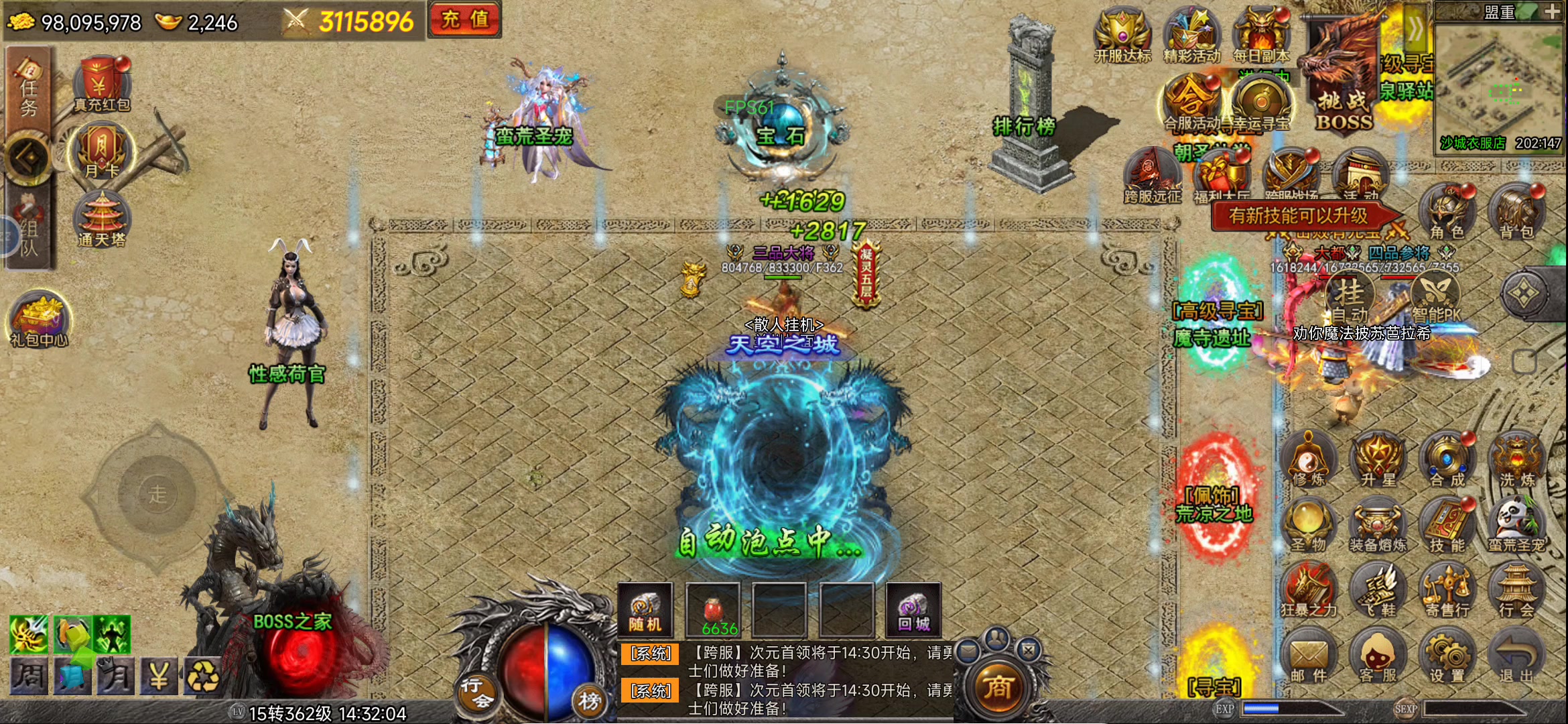 本人三个职业都亲身体验过,还是开区先玩道士舒服,开荒比其他的职业好多了,就是世界boss不好抢最后一击,最后一击基本上都是战士的,进全区第一的公会,跟大佬混好了,装备什么不缺,每天晚上睡觉的时候,去挂挂三大件,四大件,后期大佬也缺这些东西,真充红包先不要打,世界boss箱子也不要开,攒多了一块开,攒到最少2万元宝了再开,可以领不少好东西