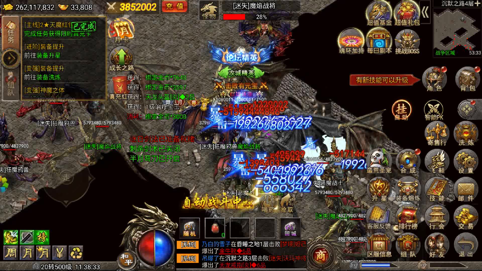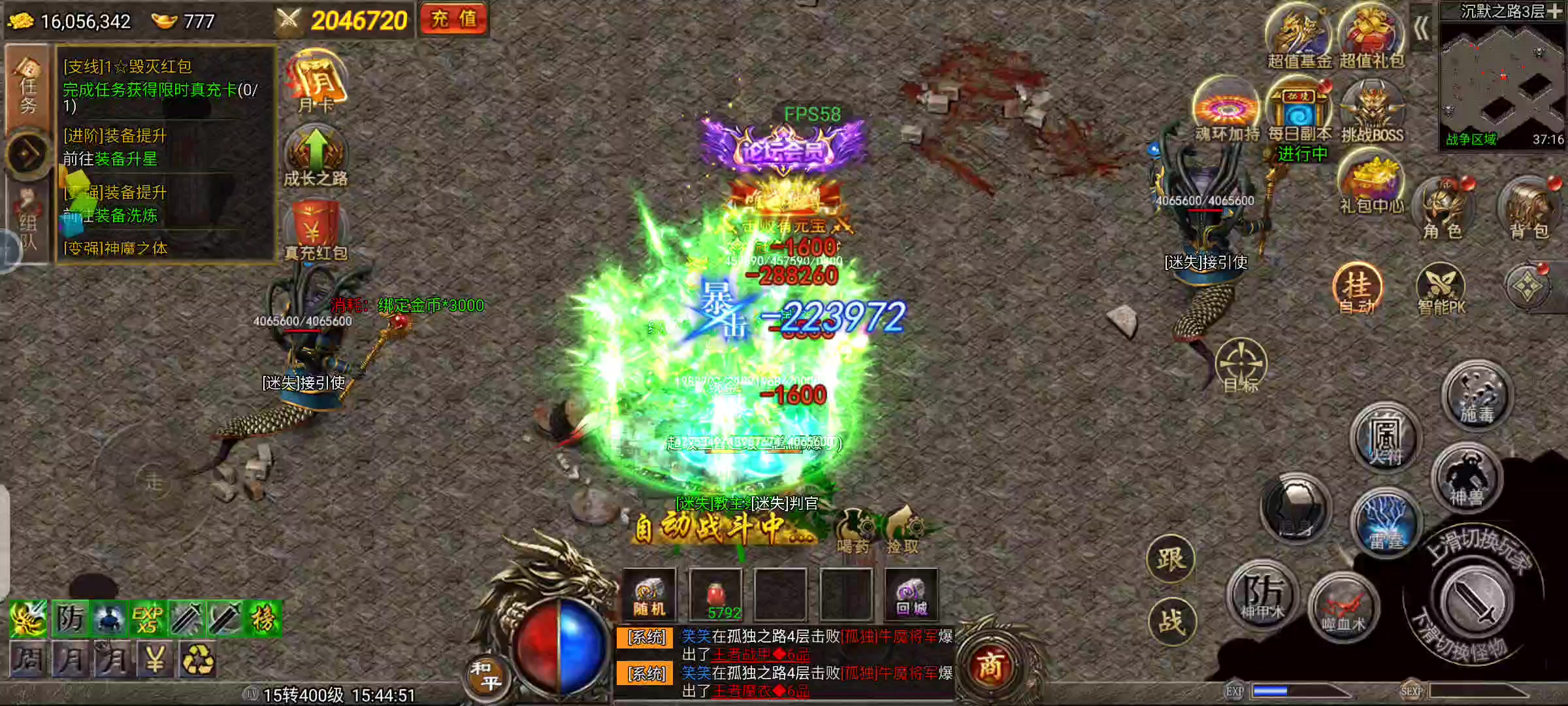16转后在沉默4已经没什么经验了,只能去更高级的第四大陆升级。 森罗挂机只去2.3.4层,因为boss没反伤,只要达到打紫怪不会死就行。我自身属性是反伤80%,吸血73%。基本上森罗挂机没问题,有五倍+狐狸+魂环的基础上,白怪2000万左右经验一个,经验很可观。 300图,要求更高一点,还是森罗的属性,boss和紫怪打不了,这里的话要么反伤90%,要么吸血85%,要不然不能挂机。 这里说下,16.