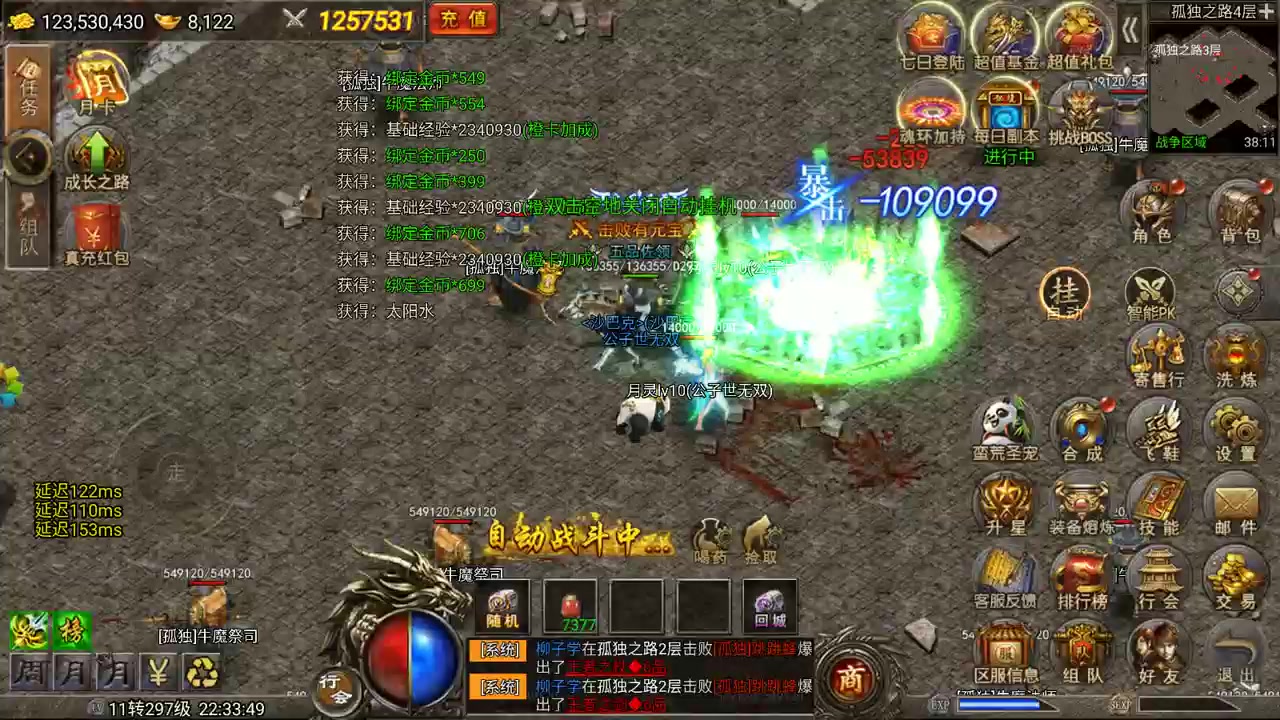 220万打森林,到了这战力,吸血已经70多了,第一步我在群里说过,装备洗成吸血跟生命,去掉伤害尤其是暴击,没给你们说一定要把增加伤害的属性去掉,不要。带着吸血头,,第二步,卡住7大件,就是治疗玉那7件,别升到天之,用6转的就行,洗练属性也不要加攻击,为什么卡天之,因为升到天之你洗不起,充上千都洗不起的,头盔带吸血,道士关闭单体符就可以挂机第四大陆森林了,切记,3个职业一定要把斗笠摘了,比如你打出暴