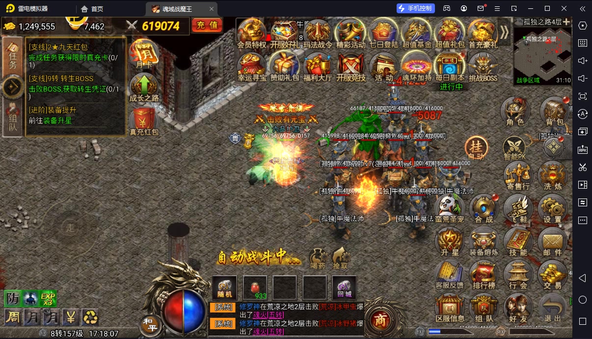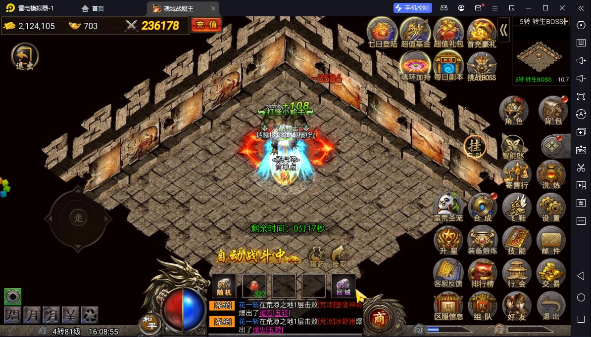 大伙都在说9转BOSS很难打,伤害太高了,这边给大家演示一下9转BOSS怎么打,法师和道士职业可以按照我的打法,进图前先吃吸血神药和体力神药。进图可以先扛着BOSS打,打到半血就拉开,一直输出到BOSS靠近我们再拉开。很容易就打死了。战士是经典的后期职业。战士职业的话70多万战力,攻速戒指和吸血戒指等级拉到20左右可以打。实在打不过可以等第三天的首充吸血头盔领到再去打。#攻略#游戏讨论