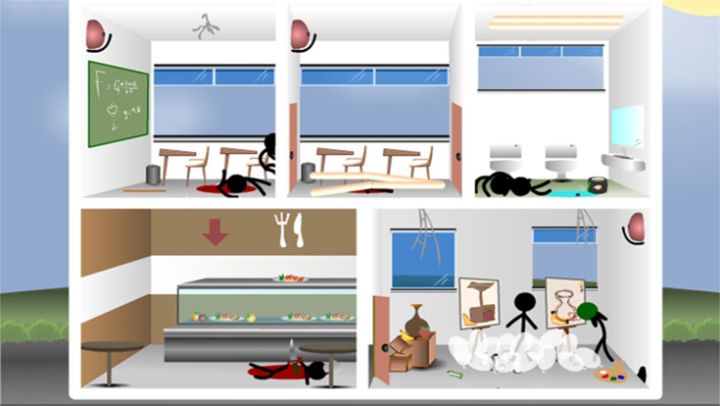 You'd think as soon as the fire alarms started going off that the people in this stick school would start filing out of building instead of stepping over their friends' dead bodies to step into the flames. Although the Stick people never were too sma...