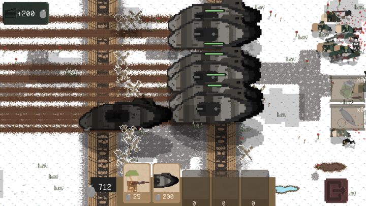 这个游戏非常有吸引力。游戏的玩法很简单,你可以通过操控士兵来进行攻击或防御,在一个个沟壕之间前进或后退。游戏中有不同的兵种,个人体验下来只需要坦克就可以横推所有关卡,其他的只推荐购买狙击手。具体的过关思路就是开局攒钱,在敌人距离你很近的时候将所有钱来购买坦克。这样做的原因是因为游戏的射程是最重要的,而坦克拥有极高的血量和第三射程与最高的攻击,一旦形成规模优势,即使敌人出动巨量军队也可以很轻易的进行对抗。