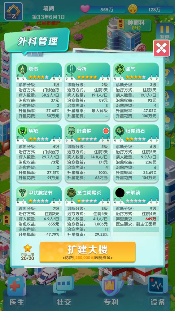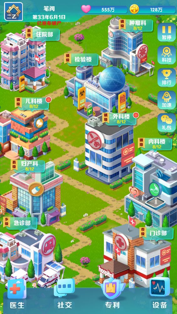 (2)切记前期不要招募太多医生,1栋楼1个就行,耐心等待是最好的方法,临时缺钱的话可“社交”领下红包;