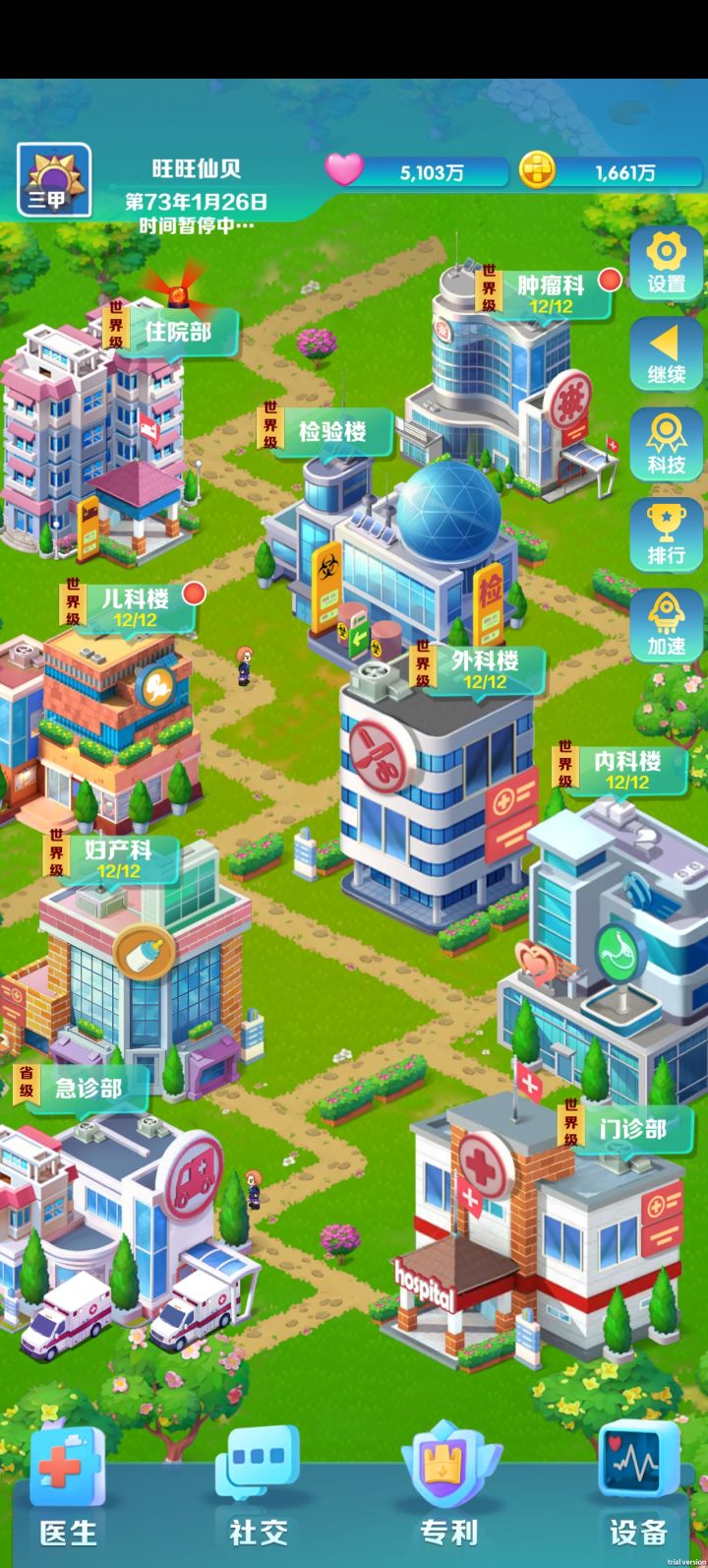 不算很硬核,软硬适中的模拟经营类游戏。模拟对医院的经营,功能相对简单一些,盖了科室招人进去就行,操作也不复杂。哪里有红点点哪里,只要不是濒临破产,基本都能支撑下去,介于数值向养成和硬核模拟经营之间。