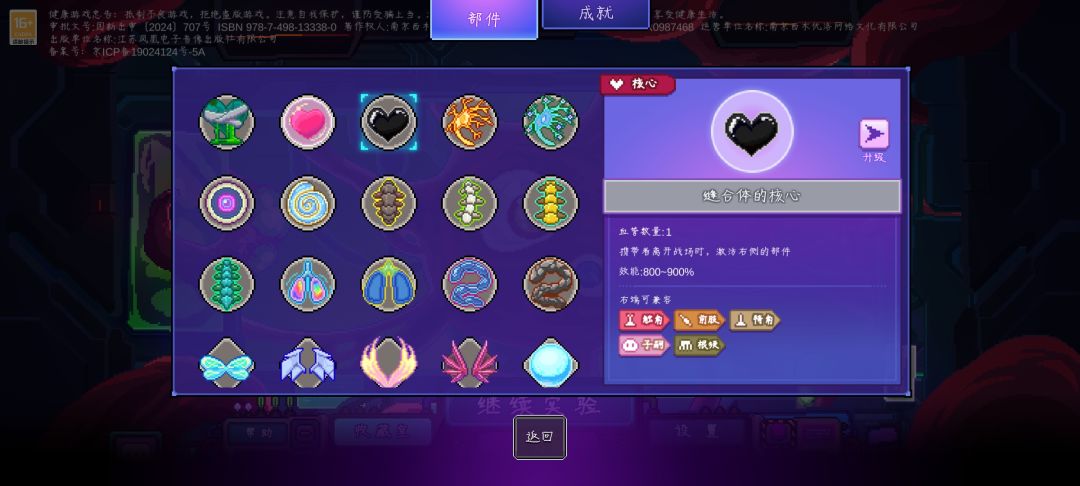 刷成就过程中个人觉得最难的成就是三个5难度,我拿大同,阿财和咕咕通的,其实玩到后面熟悉流派之后,大部分都可以通5难度。 分享简单的心得。我的思路是前期主发育,后期加属性。先把细胞复制和收取拉满,然后点品质,大概到9层左右打完一层就获得上千细胞,加点就没压力,同时高品质器官也比较容易拿。 大脑配置推荐子嗣+排泄/核心+腹/犄角。一个百变怪带🔥腹配合一个淘气包(独狼核心)受伤触发犄角随便乱杀,其他就带
