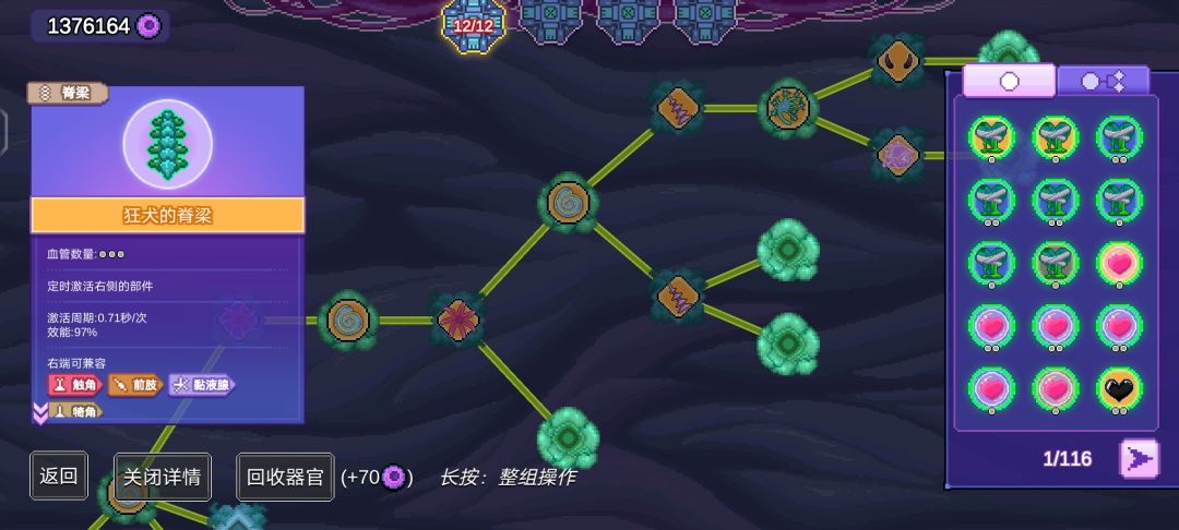 如图,受伤掉落一颗心一颗盾,百变怪去世掉落磁力坚果,再加上那啥消化系统每3秒掉落四个磁力坚果和一颗心,保证能周期性吸收场上掉落物,孢子鼠保证伤害,只需要点开始就行了(后续甚至我还能再补个蝙蝠翅膀)