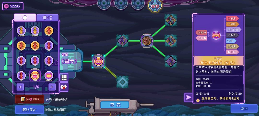 本文原作者墩子,转载已授权 1. 基础知识 生物原型这个游戏中,你需要将得到的器官进行合理排列,让器官发挥出更高的效能,从而击败更强大的敌人。器官总体而言分为两类,一类边框为圆形,主要决定右侧器官的触发方式,在本文中将称为形式器官;另一类边框为菱形,主要提供具体的功能,在本文中将称为功能器官。 器官从最左边的大脑开始向右侧连接。大脑右邻连接的是形式器官。形式器官必定有至少1个血管(即,它右邻连接的