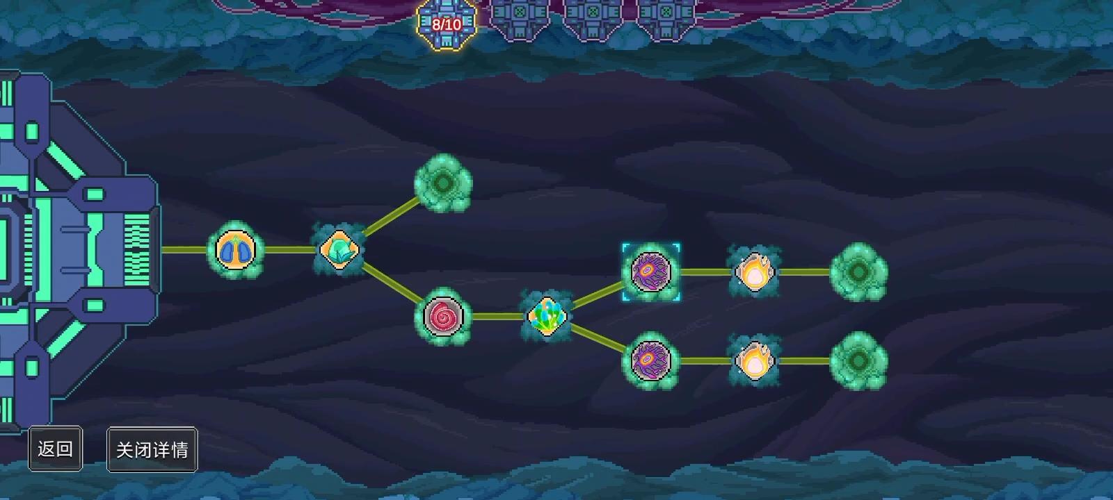 游戏目标:走位避开怪物,并存活过第十五层或击败十五层boss玩法:击杀怪物,获得细胞升级提升自己1.每次升级时可以获得一个器官部件。 进入下一关可以获得一个部件。2.下一关开始,获得的部件随机每次三选一;部件分两个类型○和◇,○激活器官,◇功能/攻击器官3.选完奖励后,进入备战环节包括三个部分;①.变异:即安装器官部件;起始顺序必须以:○→◇→○→◇以此类推○→◇为一组,激