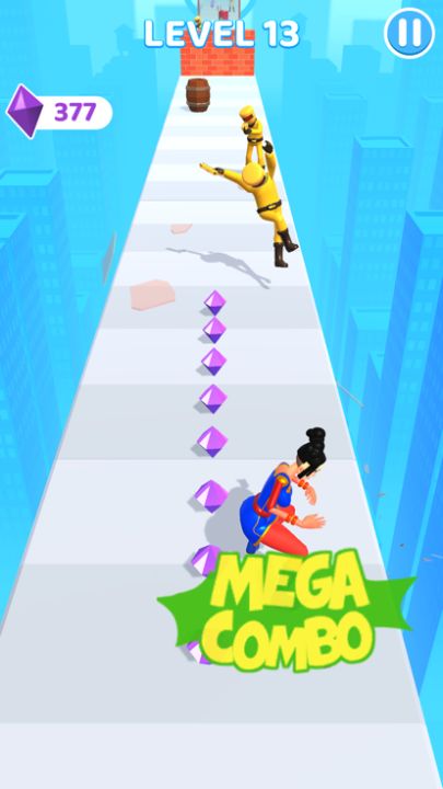 You have big fists with which you punch obstacles and enemies that come your way. Don't break the beat and punch everything. Don't forget to collect diamonds.