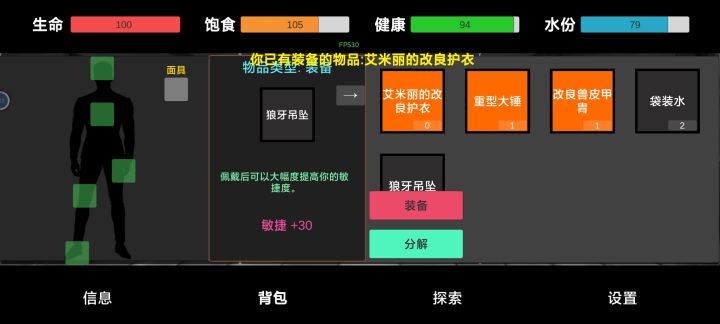 这个小boss能无穷尽刷合金,但是拿不到抗体和力量,得不偿失我后面重新安装后,拿药剂猛刷,暗夜被我刷成小弟了都我这里建议在城市混,在森林真的混不动,只能刷鸡,先去搞把撬棍(很重要)提5攻击,再树莓是必刷到160再弄装备,医疗用品最好在战斗时才用绷带,平时拿创可贴用用就好,有条件就先搞武器,制作第一个鱼叉后,撬棍和斧子退役,实在刷无聊了就附近逛逛,食物和医疗有几率刷出来,最好有一套衣服(两禁两守