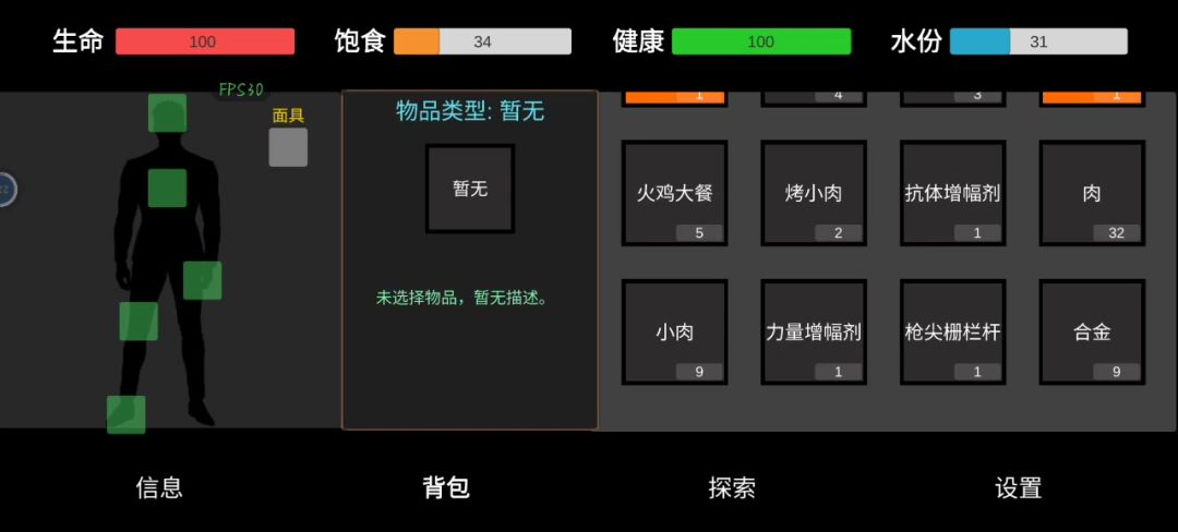 这是我已知的,只是文本显示的数据没改而已,不属于bug 因为一直有打算优化界面,按钮的想法,这种饱食度什么的可能会删掉换成别的,所以暂时没花时间去动这里