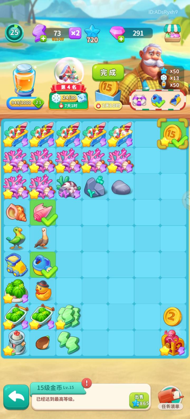 0氪4天半挑战夏日乐悠悠15级金币🏆