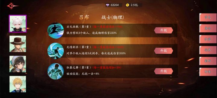 恭喜你已经有一套五人阵容,现在呢该进阶了。雷法(二速位,输出)语嫣大乔(三速位,收割雷法没打死的怪)女巫(一速位,开局加全体暴击)张飞(四速位,加全体盾,盾根据张飞血量提升厚度)芷若小乔(龟速位,打boss主力)女巫加暴击技能升满张飞盾牌技能升满雷法群秒升满芷若打三下的技能加满语嫣群攻四个技能加满,打两下技能加满(打boss)装备篇雷法,主看智力 ,攻击加成,最大攻击雷法