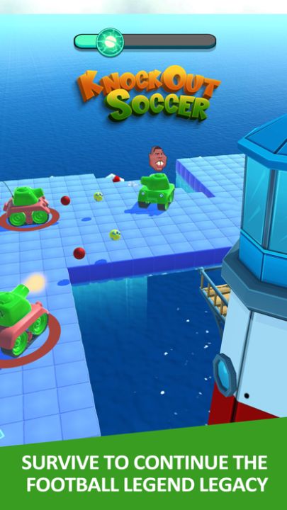 Are you fast enough to dodge the enemy tanks that are shooting soccer balls and shoot them to throw them off the platform?