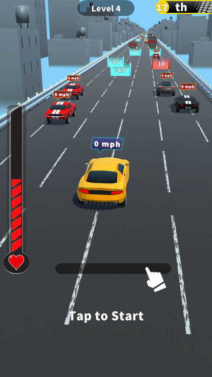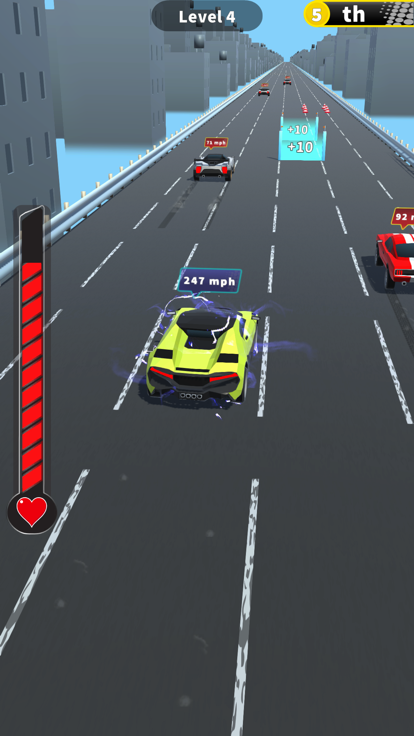 Take care about the road blockers and other race cars,