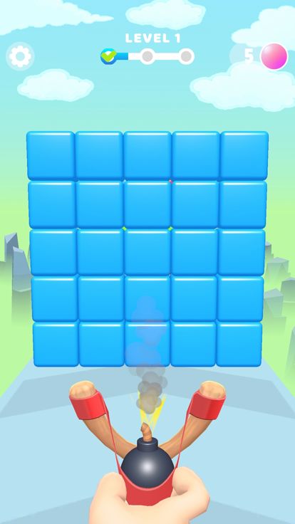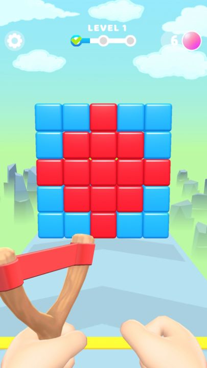 A game in which you need to paint a wall of multicolored blocks with slingshot shots. The task is to paint the wall so that it becomes monochrome. Once all the blocks have the same color, the wall collapses.