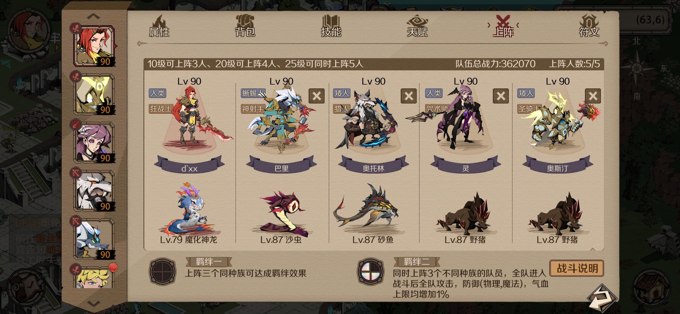 凪夜 ID:1209093184412594176 平民阵容:主角狂战,奥托林猎人,卢卡斯冰法,巴里神射,卡尔圣骑,俩法宠,1物宠,1物防宠,1法防宠,副练一个40到45咒术师过主线。