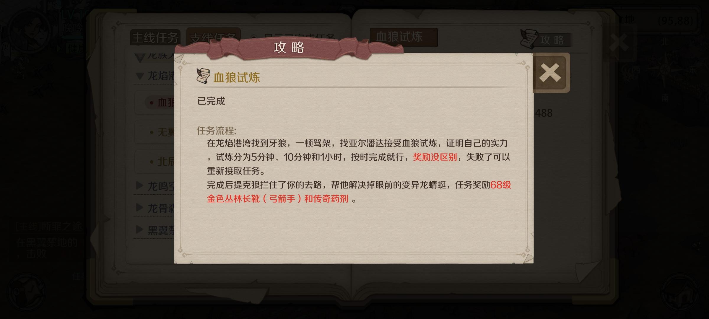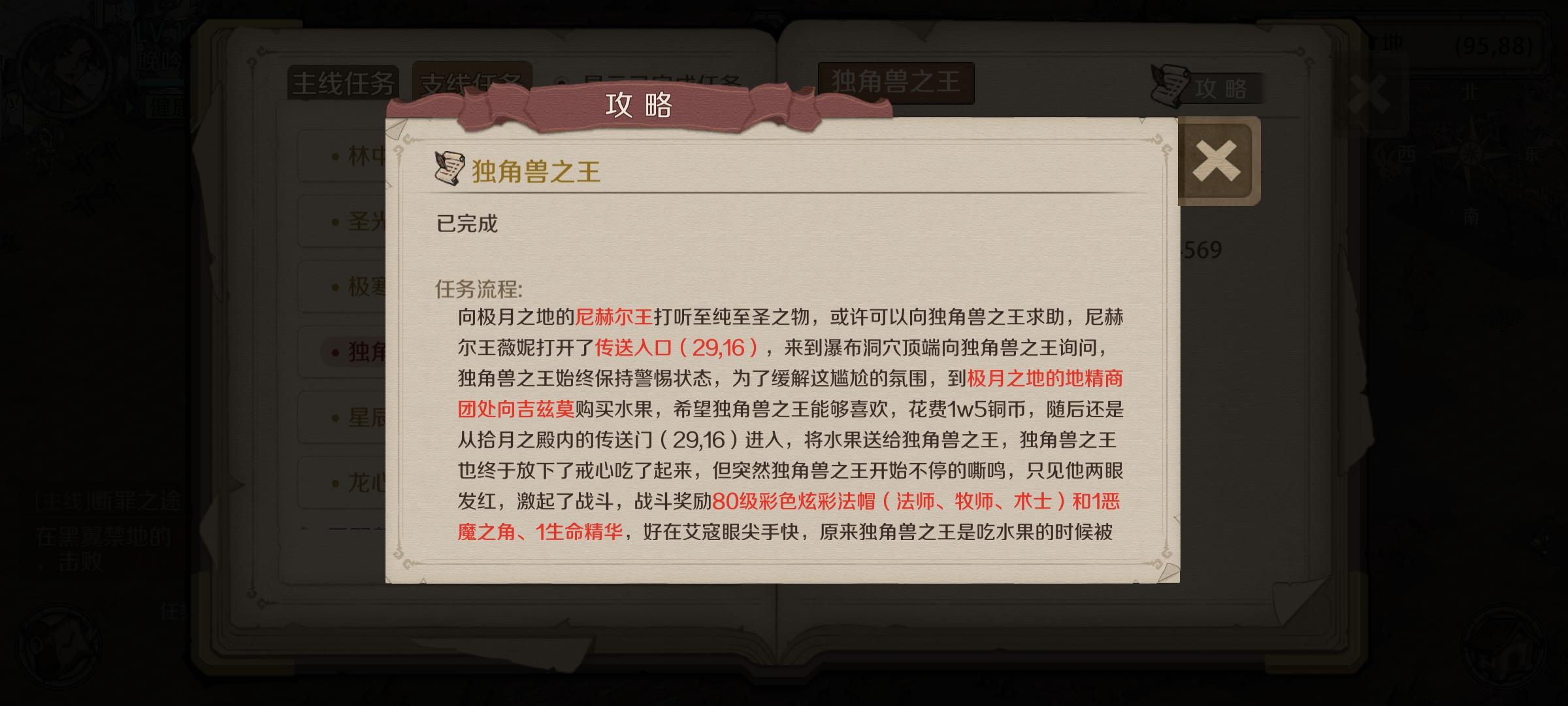 整个任务流程比较肝,一共4个任务。 结尾有处任务中大家可能遇到的困难。希望对朋友们有所帮助。 ①前置任务:主线推进到用金瓣玫瑰救活水神之子后触发 来到黑森林克拉泰拉城找到“炼金房的泰希斯”接取任务《金瓣玫瑰》随后根据任务攻略提示,完成任务。 ②前置任务:主线完成拯救小精灵,支线完成金瓣玫瑰。 过一小会儿,来到黑森林西北角金瓣玫瑰任务结尾处的花园,有一个裂缝,和它对话接取任务《原野之歌》随后根据任务