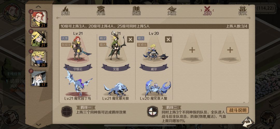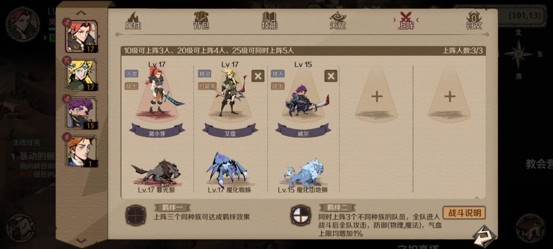 窝小芽 队伍搭配:战士+弓箭手+战士 新人第一天20级之前3人队伍,主角加2个任务免费随从,宠物随意,注意别忘记加点,开荒无压力#时间之钥最佳阵容