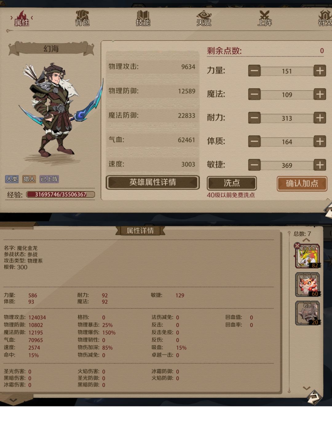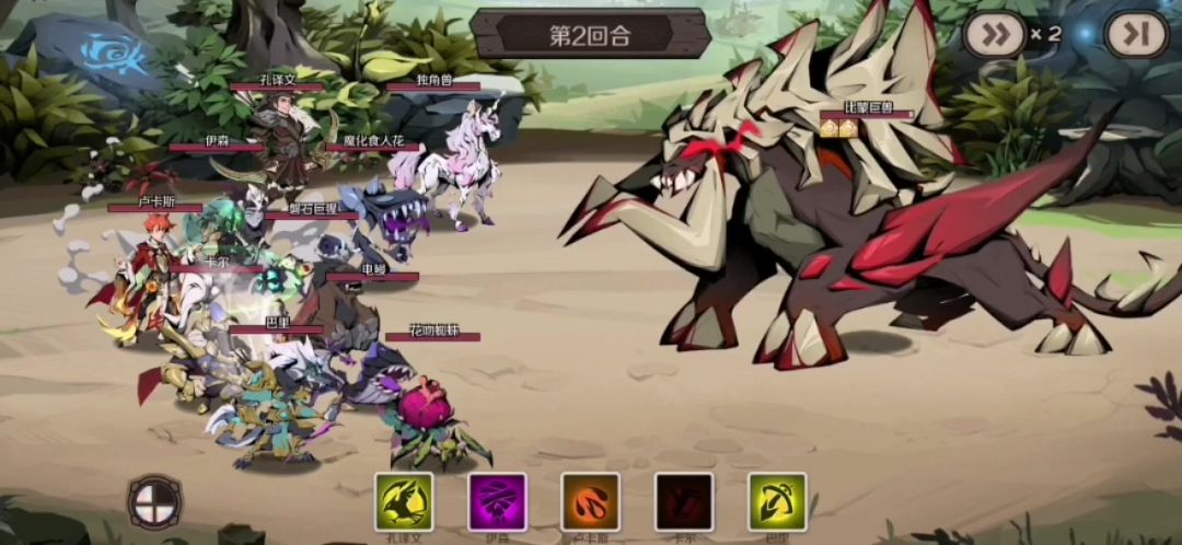 因为不想给双龙做80套,所以输出差了点搞得很极限,又是连赌数个小时,终于将不死狂欢斩落马下! 照例双黑龙套肉宠双猎人最速抗伤,还有一只肉宠全耐力巨兽套,装备没洗基本强化5。然后是小天使光牧>神射>神龙>禁魔咒术>金龙。 第一回合肉盾吃满技能,小天使加狂暴全开,关键在于神龙要比咒术先出手秒对面一个术士,然后咒术打出普攻禁魔另一个术士,这个情况下对面只有boss一个群攻,我方有光牧加奶不至于减员太快。