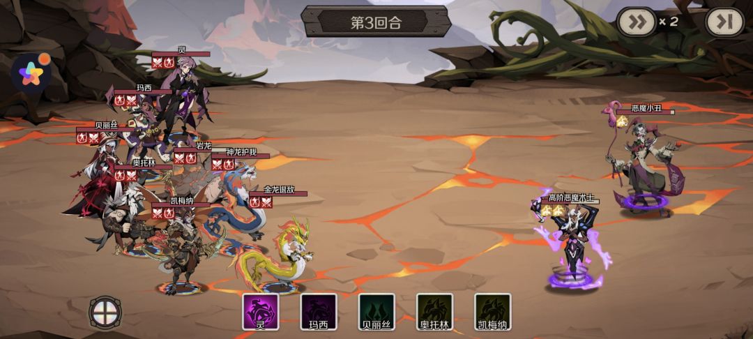 用的是跟不死狂欢相同的打法,只是把光牧速度提高到仅次于双猎三肉宠,因为对面术士石化太多基本加不了多少血。 剩下四人组依旧是主力输出控制,速度神射>神龙>咒术>金龙,咒术带技能天赋双禁魔,术士小怪吃技能禁魔,天赋禁魔依旧留给boss。 打法依然是两回合速清小怪,因为肉盾撑到第二回合结束基本死完。对面小怪是三岩龙两术士,神龙第一回合大概率秒不掉第一个术士,不过不要紧,后续咒术打出沉默即可忽略他。第一个