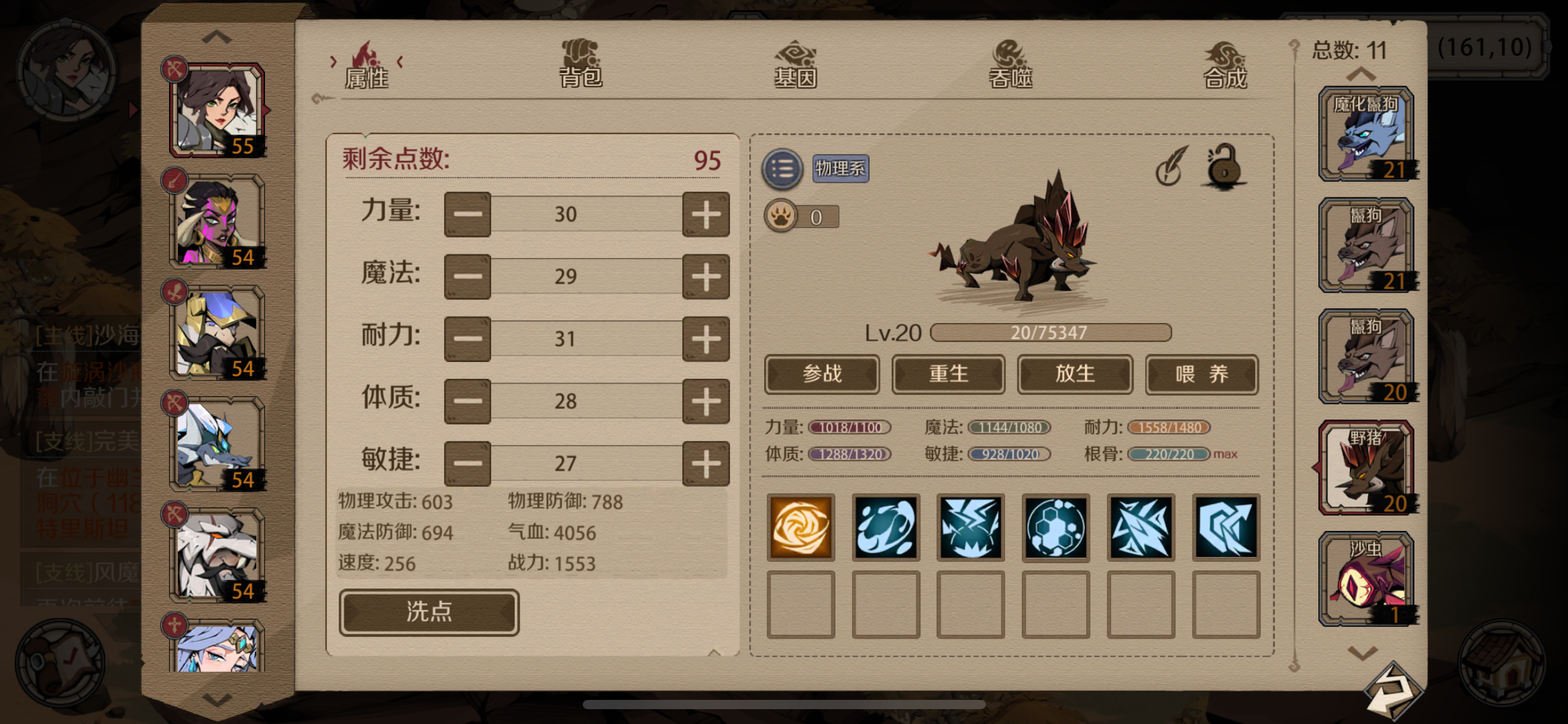 肝了一天,地图打到黑暗沼泽,任务剩下三个打不过的怪物,19级差一点20看来低级的时候少刷点怪物本来可以到20级,但是现在卡住了弄弄装备尝试看能不能再打一个任务怪升级,不知道疲劳满后任务给不给经验氪了个月卡,但是也没啥提升,攒金币用的,金币攒到了1800+主角弓箭手,送的战士和弓箭手,送的法师还上不了,宠物就算是瞎上的有个疑惑,这些角色的技能要不要都学然后升级,技能后面有个装备的按钮,难道