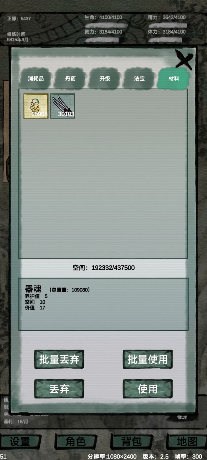 另外,行动除去消耗三条行动属性外,还需要灵器养料,以供灵器行动所需,灵器养料不足时行动亦会消耗血量。