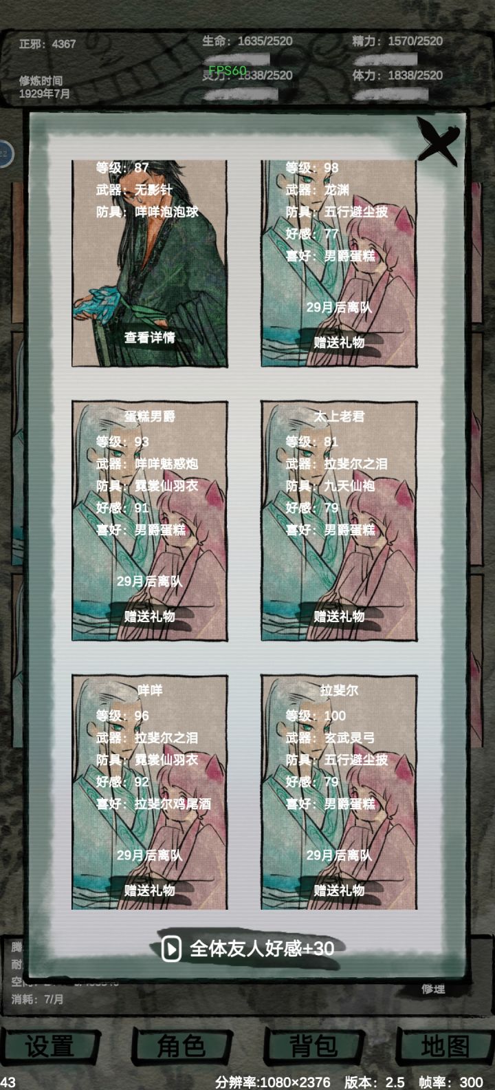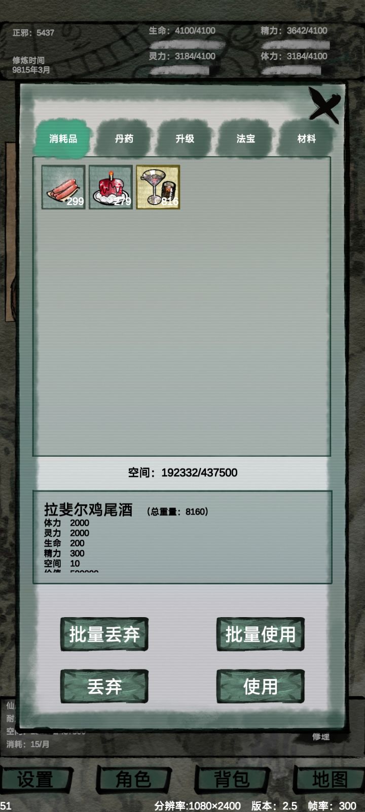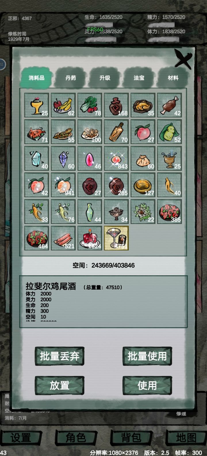 精力主要依靠洞府休息(休息会减少另外两条属性,请注意),酒两种方式回复