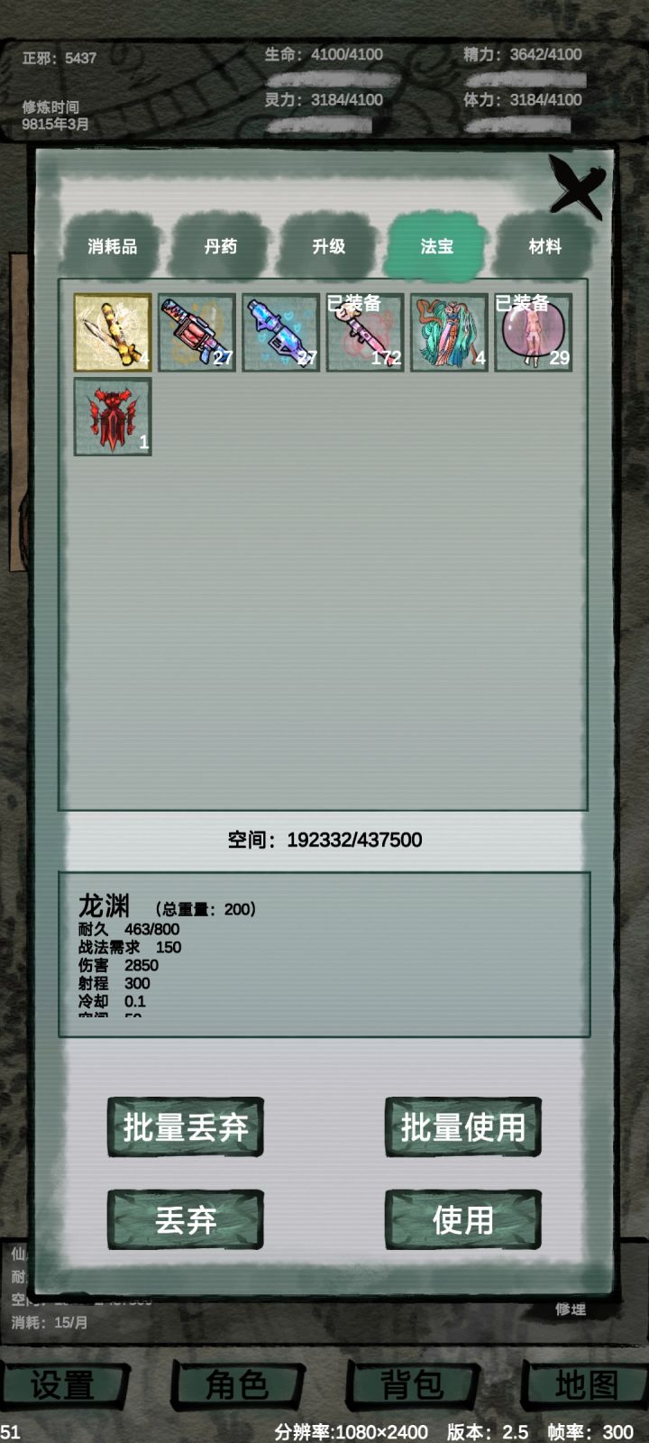 保持三条属性健康,保持灵器养料充足,不打超出自身强度的怪,就不会突然暴毙。