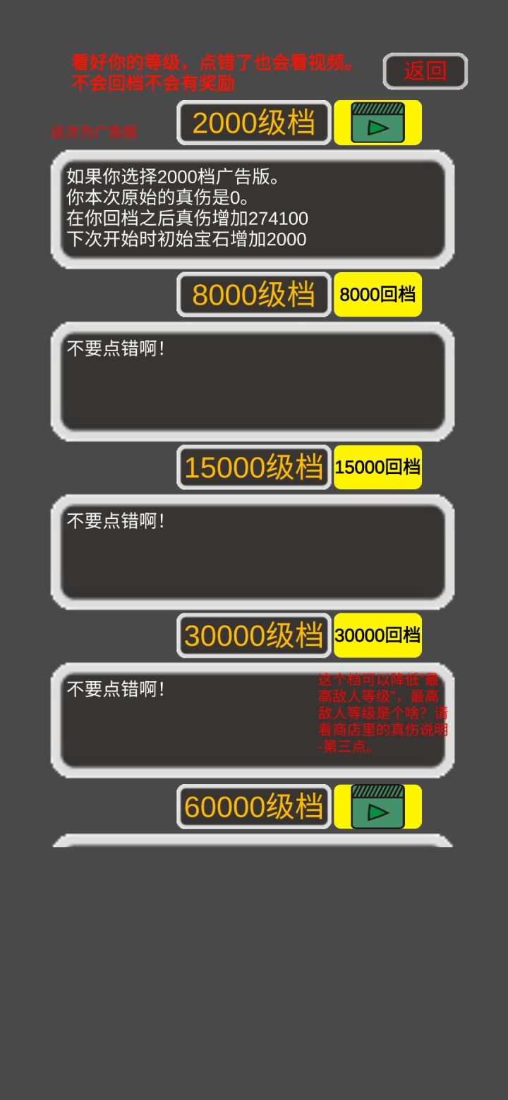 自动回档功能,副本自动升级攻击力