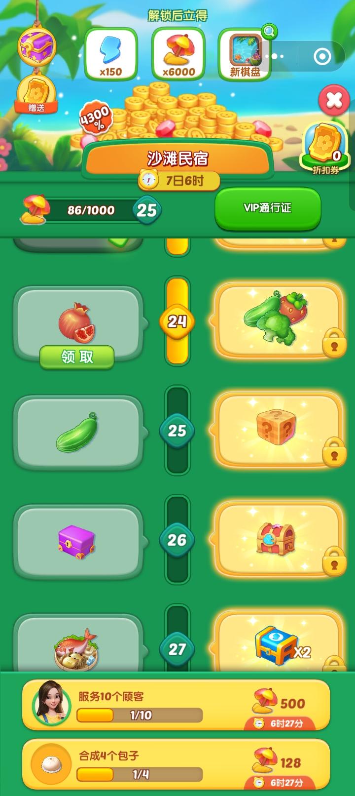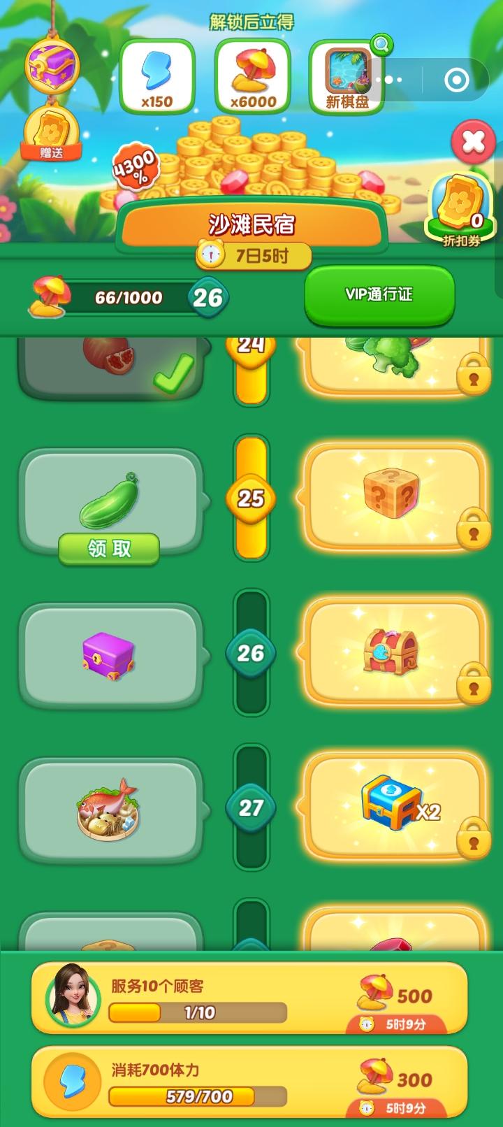 开心可以提前为彩蛋探险和榴莲大亨 囤体力开心欢乐猜拳(消耗体力,第三关奖励为剪刀,新活动,具体数据还未统计)彩蛋探险(消耗体力,完成4颗彩蛋才能开宝箱。一般不氪金玩不到开箱。游戏要领:4颗彩蛋先统一拿到体力箱、基础礼盒,再依次拿中级钻石,基础自选器。)金币竞速(5人竞赛,消耗订单,可提前囤好部分金币;各关金币不可累加;4950金币可通关,奖励主要有蓝色生产器箱1,
