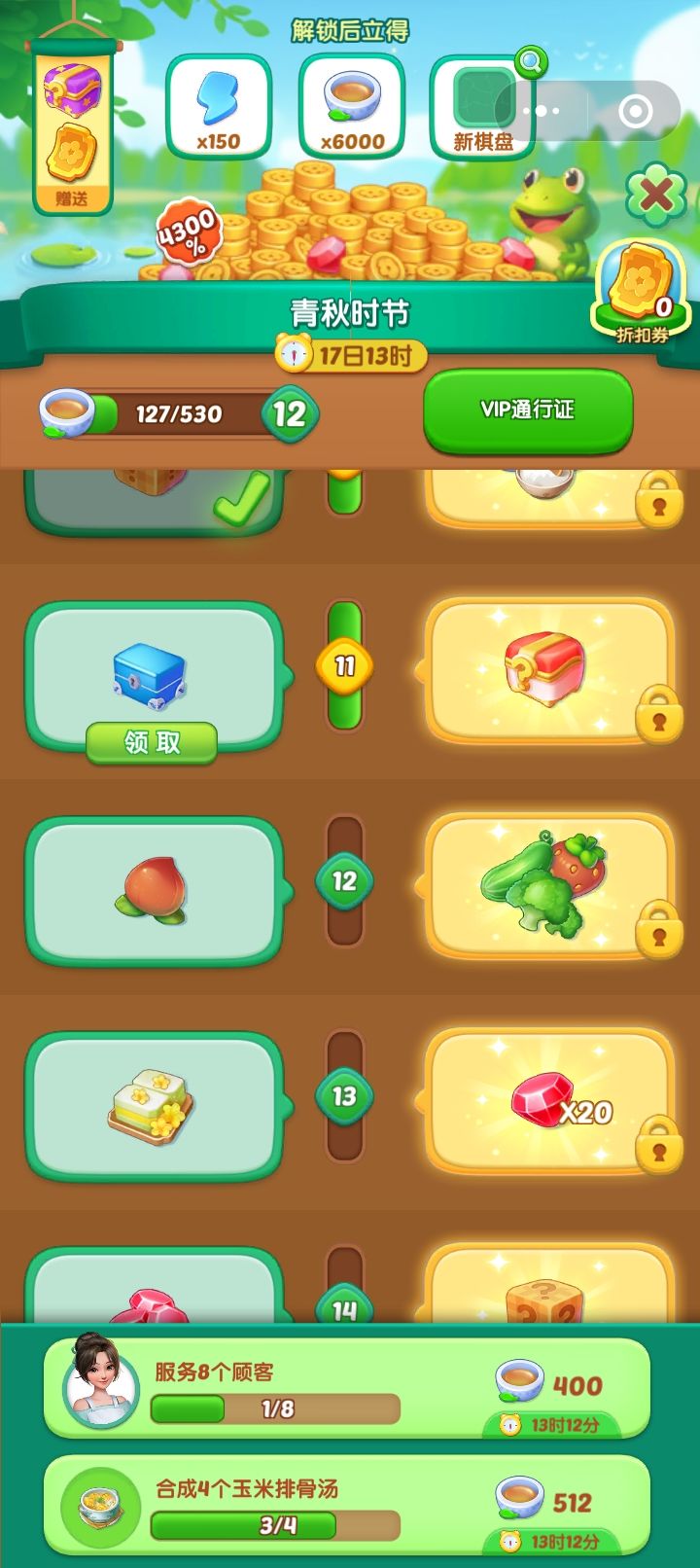 不氪金玩家以时间换大订单+万能石+美食升级
