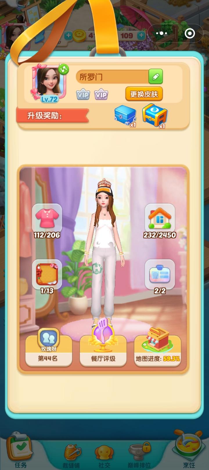 67级啦,我印象里应该是没有充值过的。玩的虽然慢,但是也算是小有收获。最喜欢的就是万能石。万能石:可对任意(非生产器)棋子使用,使棋子升高一级。点到万能石的时候,可以升级的棋子都是高亮显示,生产器是灰色的。注意不要随意拖动,防止误用。万能石可以直接得到,也可以由万能石碎片合成。4个1级碎片=2个2级碎片=一个万能石。 万能石我建议用在次最高级上:比如13级茶具,14级糕点拼盘上。次之就是1