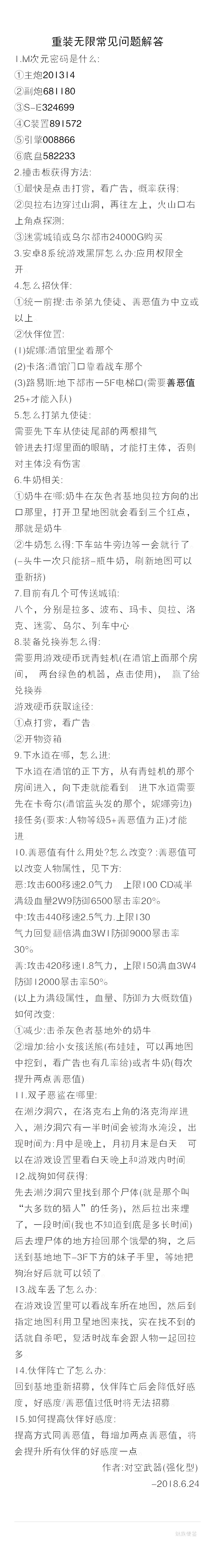 【攻略合集】重装无限攻略集合贴