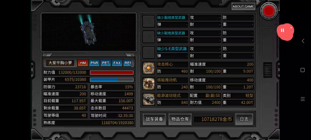 配置: 1. 副炮:雷鸟防御装置(强化10)x6 2.C装置:攻击核心 3. 引擎:陨星7200(M被拆了,速度快就行) 4. 低盘:M-次元机械 5.特殊弹:喷射装置+撞击板 6.消耗品:动力燃油+装甲包3000 注意: 蚁后剩三分之一血要上去撞,不好打出下一阶段。 二阶段走位就行。
