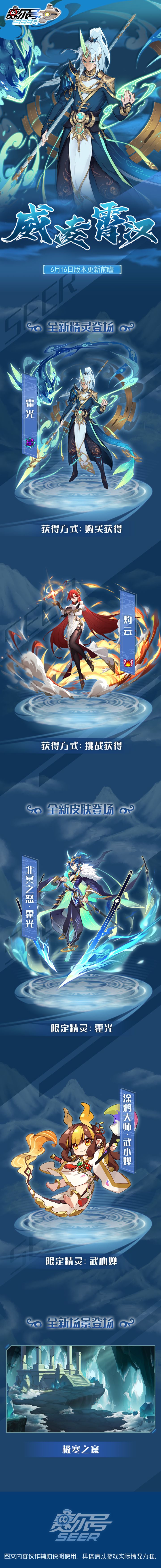 亲爱的小赛尔,6月16日赛尔号新版本“威凌霄汉”即将到来!◆全新精灵,武定玲瓏【霍光】即将登场!◆全新精灵【灼云】即将登场!◆全新皮肤【北冥之怒·霍光】【涂鸦大师·武小婵】即将降临!◆全新场景【极寒之窟】更新!查看下方长图,获取新版本的更多信息吧~