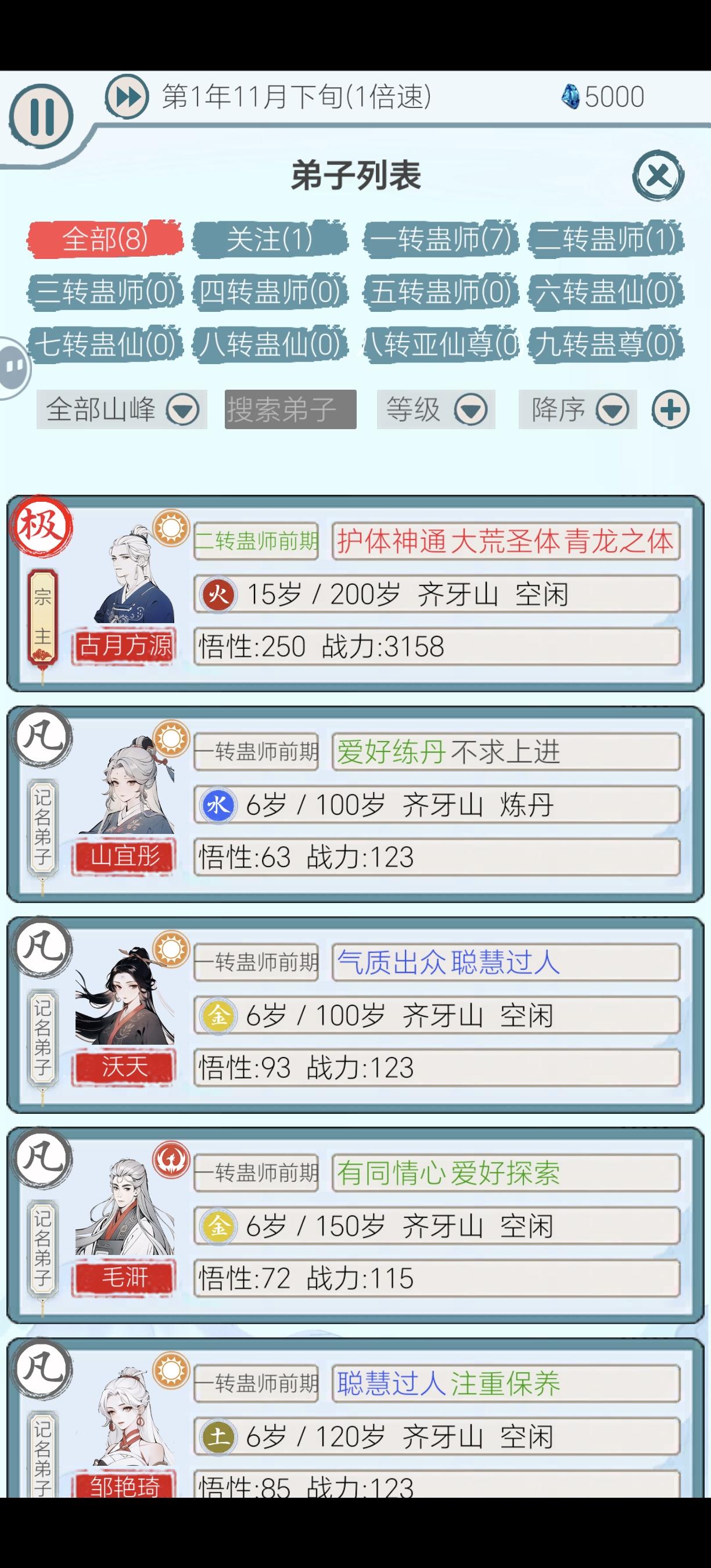 开局我招募了15000个弟子。境界名是自己取的连续丹药不断,补气丹破境丹转寿丹不断昆仑阵开启。成就大能的也只有1%左右,后面再招募20000个弟子来补。#游戏讨论