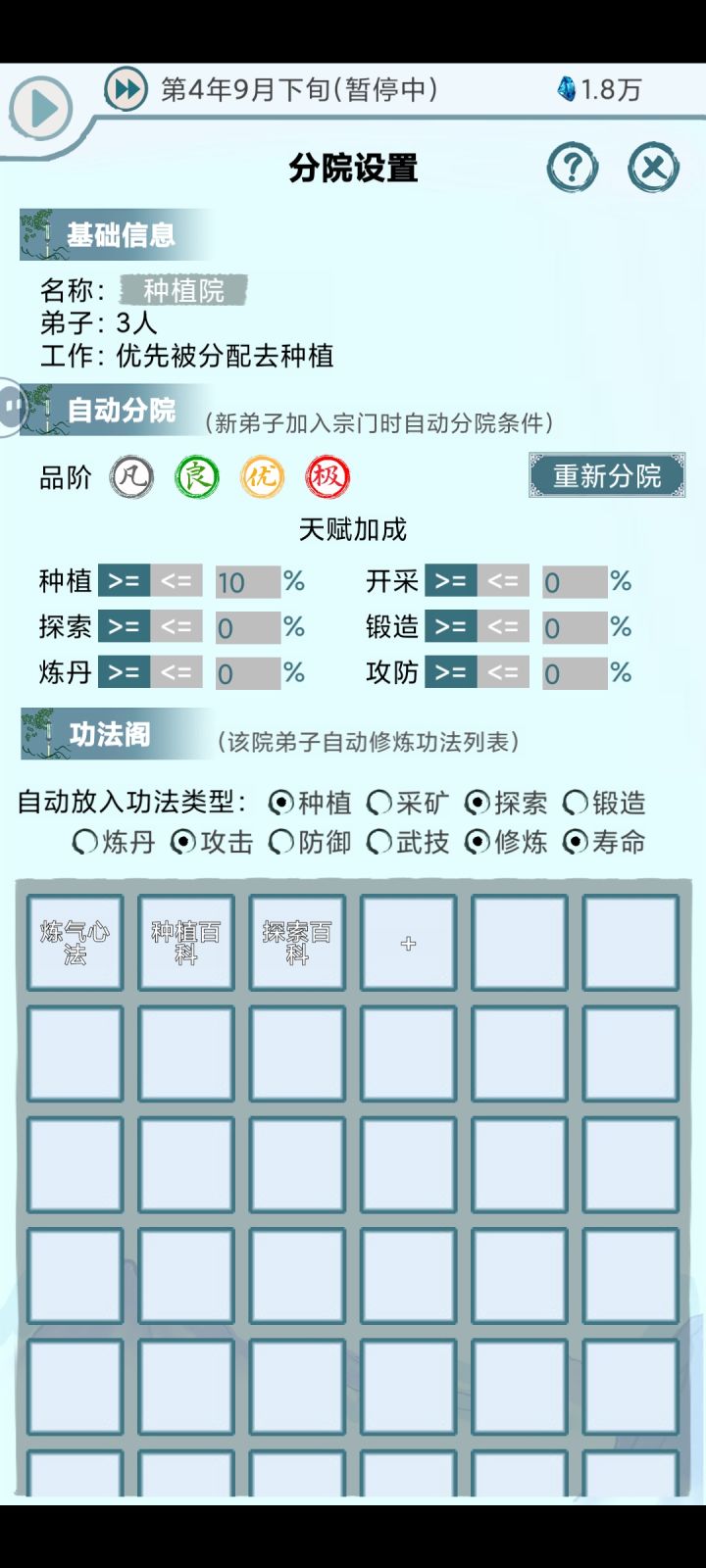 图一:有个符箓师熟练度,这个是还没开发出来的吧?图二:这些身份有什么实际意义吗?特别是弟子身份?图三:分院设置有什么意义?说是优先安排去干嘛,但是,那个位置的人陨落后,也没见自动补齐啊。比如分丹院的,炼丹室没人了也还是要手动补上啊。