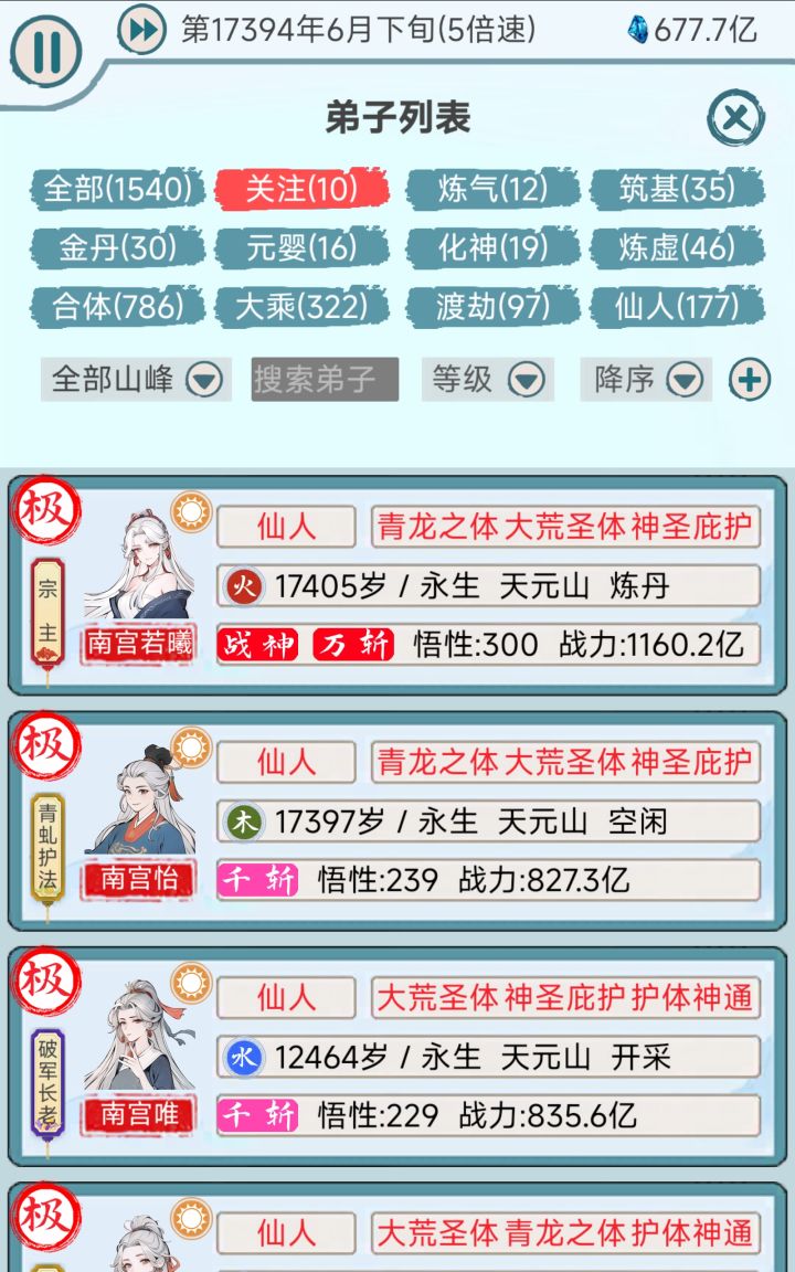 开局我招募了15000个弟子。境界名是自己取的连续丹药不断,补气丹破境丹转寿丹不断昆仑阵开启。成就大能的也只有1%左右,后面再招募20000个弟子来补。#游戏讨论