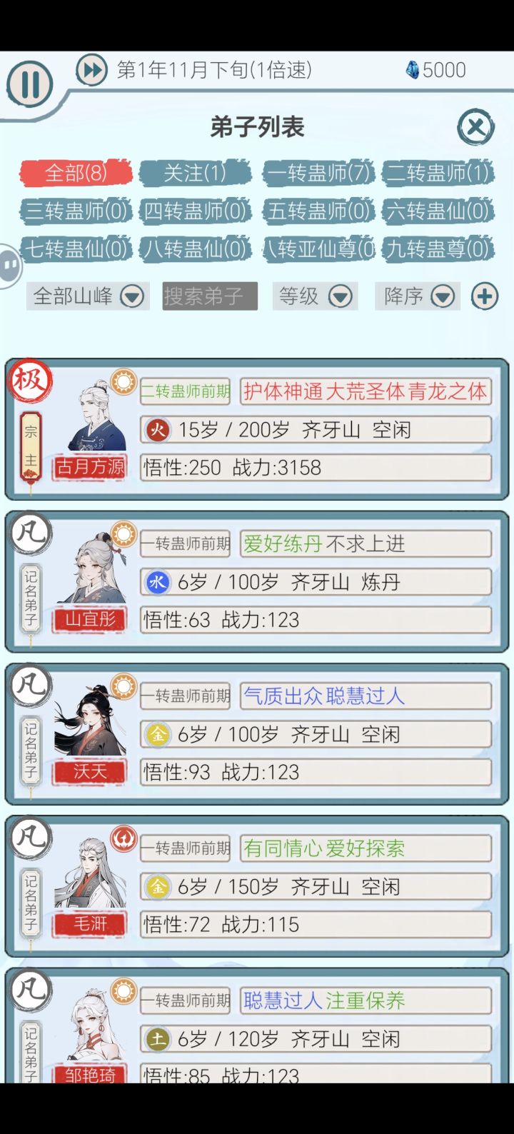 宗主打出百斩后,其他弟子的页面也出现,但也只是页面显示上方有,有丝丝强迫症的我有点难受