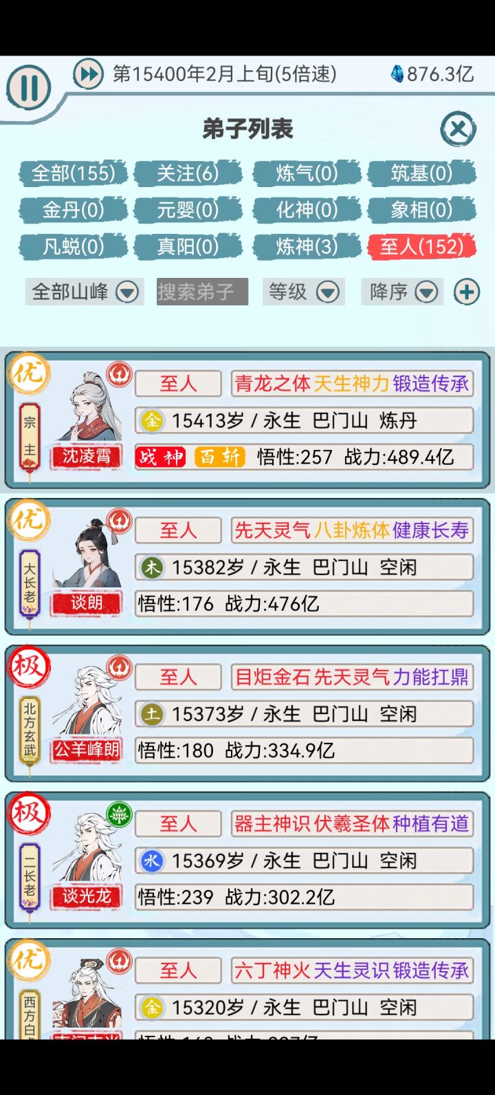 开局我招募了15000个弟子。境界名是自己取的连续丹药不断,补气丹破境丹转寿丹不断昆仑阵开启。成就大能的也只有1%左右,后面再招募20000个弟子来补。#游戏讨论